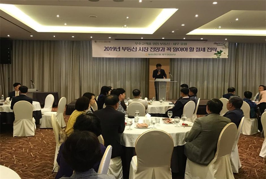 NH농협은행 제주본부(본부장 강승표)는 지난 14일 아스타호텔에서 고객 60여명을 초청해 부동산·세무를 주제로 2019년 제1차 NH 고객포럼을 개최했다.