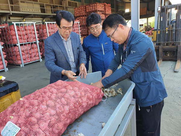 25일 농협중앙회 제주지역본부(본부장 변대근)와 마늘제주협의회(최장 이창철 대정농협 조합장)에 따르면 24일부터 전남 무안에서 비계약 재배 물량 중 700t 상당에 대한 비축 수매 작업이 진행되고 있다.
