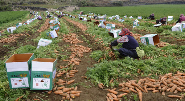 작황 역시 여의치 않아 걱정을 키웠다. 중국·베트남산 당근과 가격경쟁은 물론이고 상품성까지 변수로 작용할 경우 농가 수익이 떨어질 수밖에 없기 때문이다. 당근 전체 생산량은 재배면적 감소 등의 영향으로 전년대비 11%, 평년 대비 19% 감소한 4만2000t으로 추산됐다.