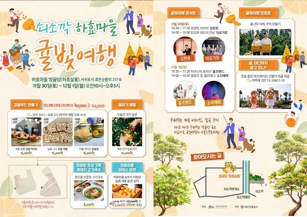 또한 하효 마을 지역 주민들이 마련한 '하효마을 파머스 마켓'과 감귤 구이 시식 프로그램을 진행해 감귤 소비 촉진을 유도할 예정이다.