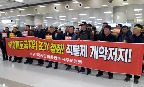 또 "정부가 추진하는 WTO 개도국 지위 포기 방침과 직불제 개편은 제주농업의 근간을 흔드는 중차대한 문제"라며 "정부 차원의 농산물 가격안정 대책 수립과 위기에 빠진 농민생존권 보장이 절실하다"고 주장했다.