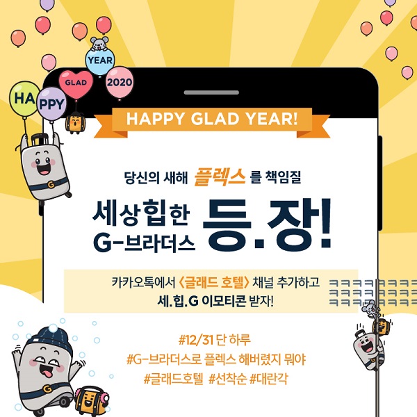 신년·겨울 콘셉트로 제작된 이번 이모티콘은 선착순으로 배포하며 카카오톡 검색창에 '글래드 호텔'을 검색, 친구추가 하면 무료로 다운 받을 수 있다.