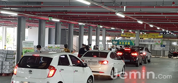 도·교육청·행정시·관계기관을 대상으로 공동구매와 차안에서 물건을 받는 드라이브스루 방식으로 이뤄졌다.