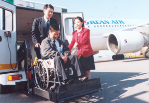 대한항공의 경우 2000년 제주공항에 장애인 특수차량을 도입해 운영하고 있다. 지난 한해 동안 6100명, 올해 8월까지 정신지체 장애인, 임산부 등 5648명이 휠체어 특수 서비스를 이용했다.