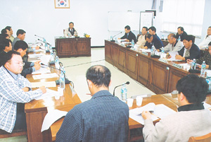 ▲ 감귤가격 하락에 따른 긴급회의가 15일 오후 농협 제주지역본부 소회의실에서 열렸다.<부현일 기자>