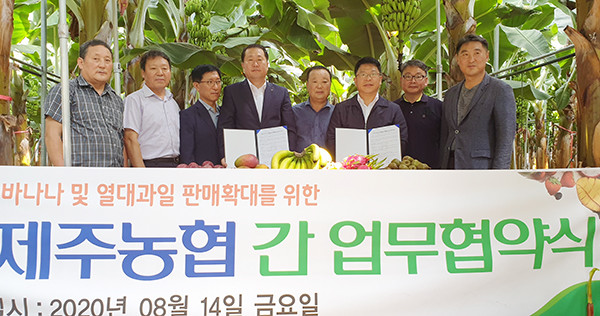 농협중앙회 제주지역본부(본부장 변대근)와 농협하나로유통(본부장 김문기)는 최근 김녕농협 관내에 위치한 바나나농장에서 국내육성 제주바나나 유통활성화와 농업인 소득향상을 위해 협력한다는 내용의 업무협약을 체결했다.