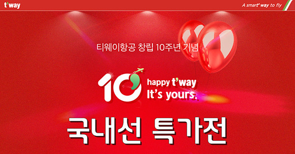 티웨이항공 창립10주년을 맞아 국내선 특가 이벤트를 진행한다.