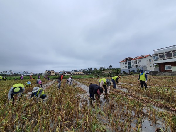 외국인 근로자는 물론 도외 인력 확보도 어려워진 상황에서 제주농협이 도내 마늘 수확작업 인력을 확대하기 위해 총력을 기울이고 있다.
