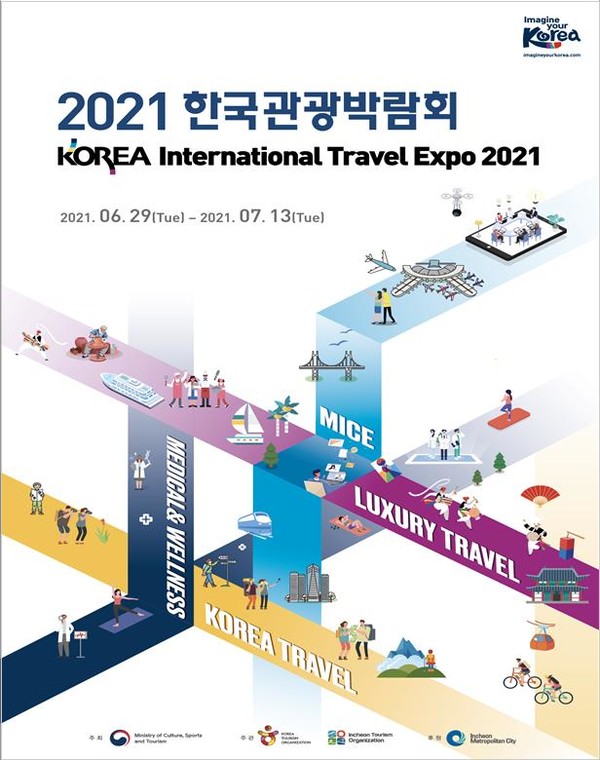 문화체육관광부가 주최하고 한국관광공사·인천관광공사가 주관하는 '2021 한국관광박람회(Korea International Travel Expo)'가 29일 7월 13일까지 인천광역시 파라다이스호텔과 공식 누리집(www.kite2021.com)에서 열린다.