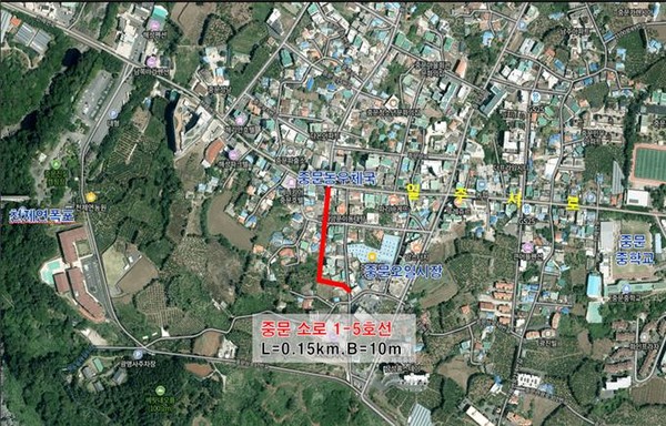 서귀포시는 중문오일시장 인근 중문도시계획도로(소로1-5호선) 개설을 올해 6월까지 마무리한다고 13일 밝혔다.