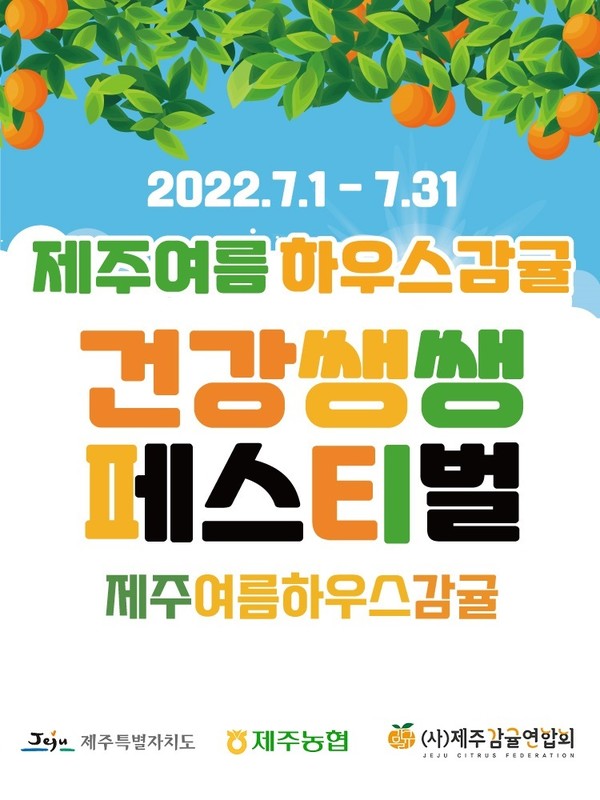 제주특별자치도와 농협중앙회 제주지역본부(본부장 강승표, 이하 제주농협), ㈔제주감귤연합회(회장 김문일)는 오는 7월 31일까지 '제주여름 하우스감귤 건강쌩쌩 페스티벌'을 실시한다고 밝혔다.