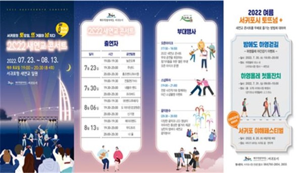 서귀포시는 오는 23일부터 8월 13일까지 매주 토요일 새연교 일원에서 ‘2022 새연교 콘서트’를 연다.