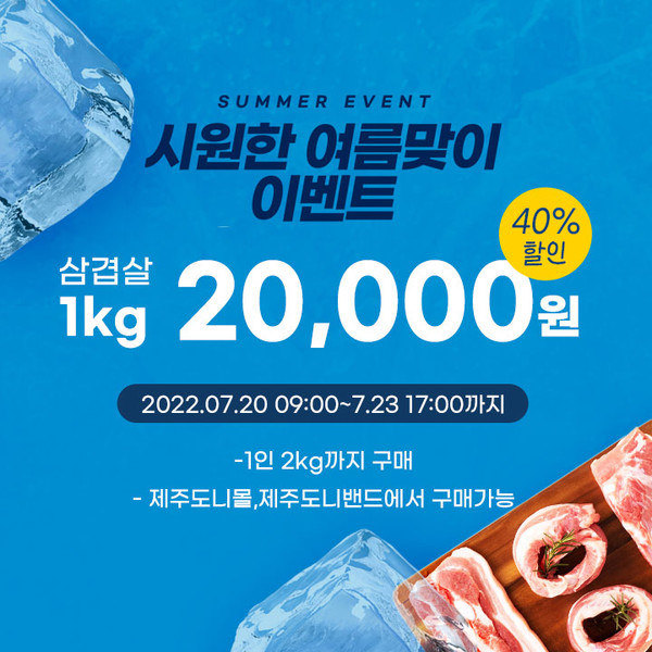 이번 행사는 돼지고기 가격 안정과 최근 물가상승에 따른 소비자의 장바구니 부담을 덜어주기 위해 제주도니 삼겹살을 시중대비 최대 40%이상 할인해 kg당 2만원에 판매할 예정이다.