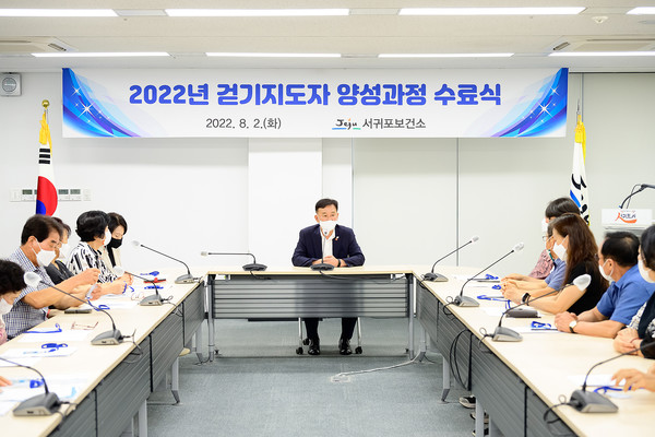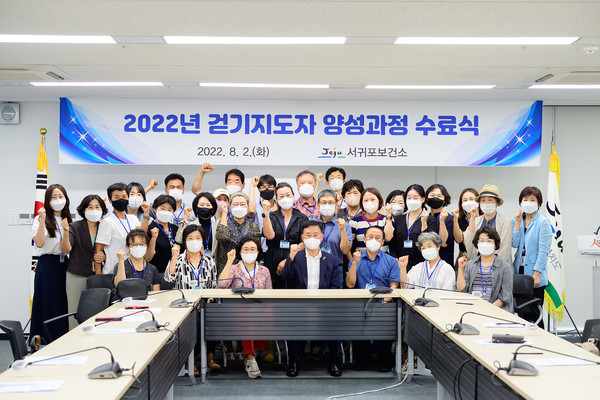 서귀포보건소는 2일 2022년 걷기지도자 양성 과정 수료식을 갖고 과정을 이수한 26명에게 걷기지도자 2급 자격증 전달했다.