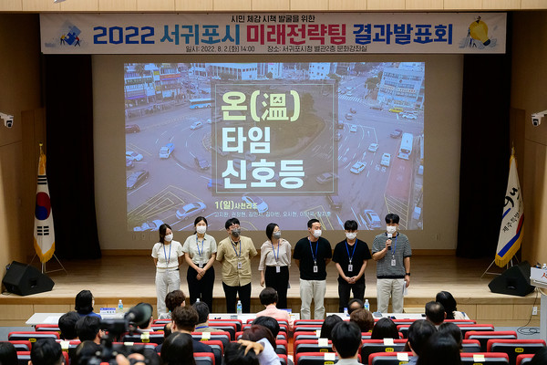 팀별로 서귀포시와 관련한 다양한 사안을 살피고 현장 확인과 토론을 거쳐 5개 과제를 발굴해 제안했고, 이중 일사천리팀의 ‘온타임 운전자 신호등 타이머 설치 사업’이 대상에 선정됐다.