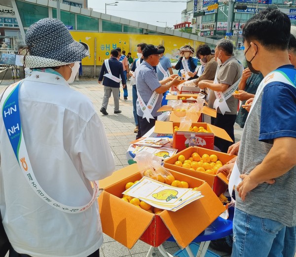 제주감귤농협 중문지점(지점장 오봉준) 단지협의회(협의회장 원방민) 회원 34명은 지난달 26일부터 28일까지 3일간 광주 송정역 및 목포해상공원에서 현지인 및 관광객들을 대상으로 '2022년산 하우스감귤 홍보 및 판촉활동'을 실시했다.