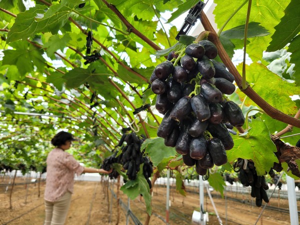 제주에서 올해 처음으로 출하되는 '블랙사파이어 포도'가 관심을 끌고 있다.