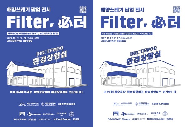 제주도와 제주관광공사(사장 고은숙), 이호동 주민센터(동장 박창현), 이호동 주민자치위원회(위원장 김영택)는 오는 10월 2일부터 10월 22일까지 3주간 이호테우해수욕장 종합상황실에서 해양쓰레기 팝업전시 '필터(filter/必터)'를 개최한다.