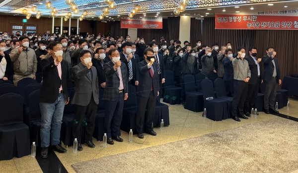 이윤수 비대위원장(한국광어양식연합회장)은 "수산양식업 적용 농사용을 전기요금 인상율이 산업용을 대비 최소 3배 이상 높다. 인상하더라도 경영 측면에서 완충될 수 있는 범위에서 이뤄져야 하는 것 아니냐"며 "수산업계 경영을 뿌리채 흔들 수 있는 불공정한 농사용 전기요금 인상 철회를 위해 끝까지 싸워 나가겠다"고 강조했다.
