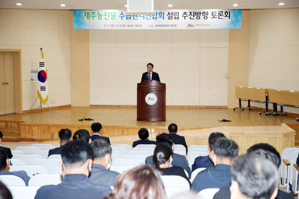 제주도는 2일 농어업인회관 대강당에서 '제주 농산물수급관리연합회 설립 추진방향 토론회'를 개최했다.