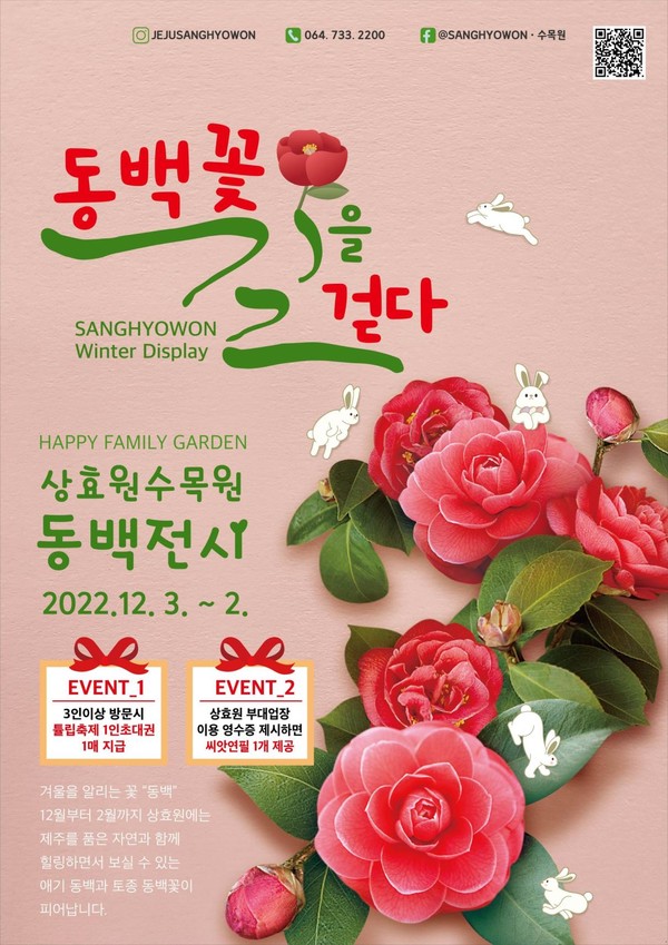 서귀포시 돈내코 인근에 위치한 힐링수목원 상효원은 겨울을 맞아 지난 3일부터 내년 2월까지 동백을 전시한다.