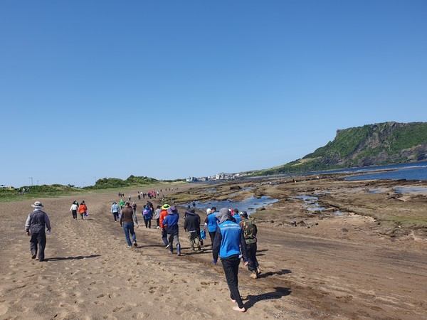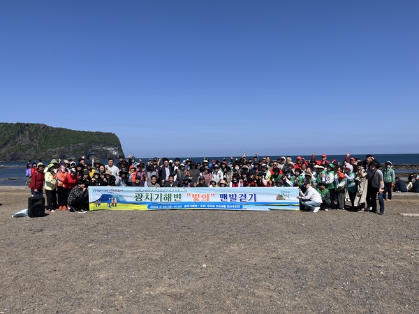 성산읍 건강생활민간추진단(단장 현승민)은 10일, 성산읍 고성리 광치기해변에서 150여명이 참여한 가운데 건강 맨발걷기 트레킹 '광치기해변 빛의 맨발걷기 행사'를 개최했다.